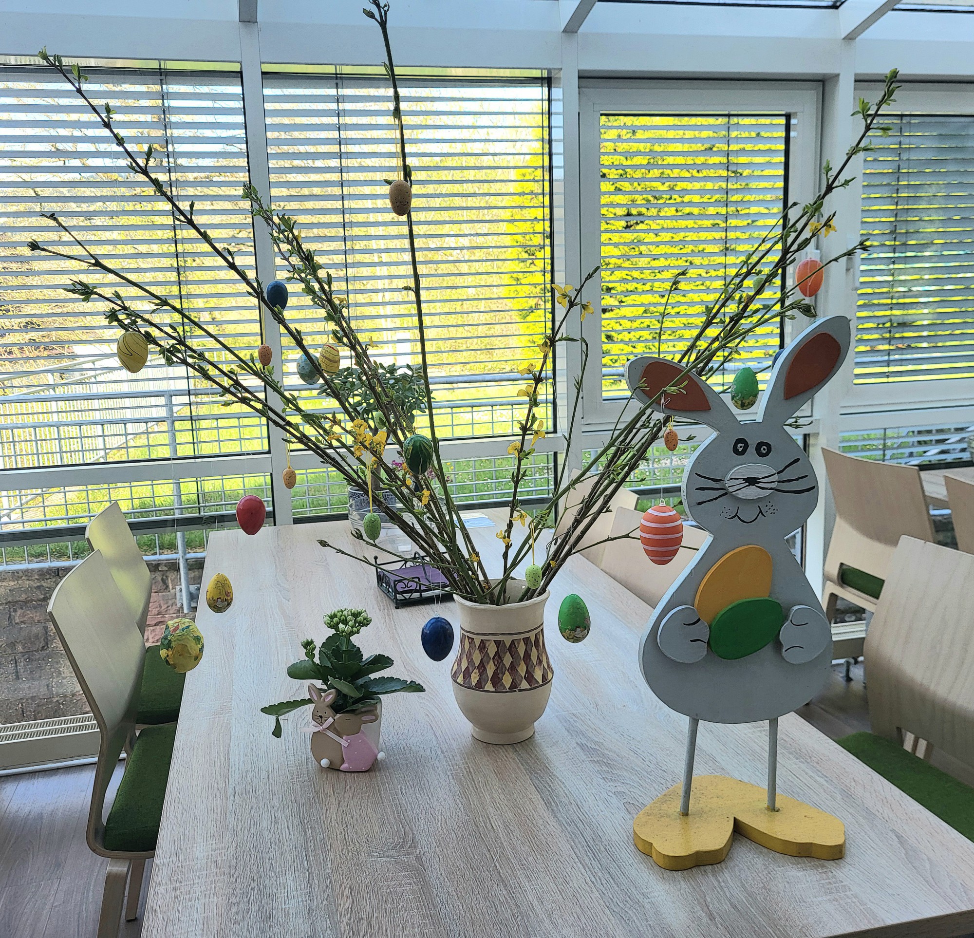 Zum Abschluss der Osterzeit zeigen wir euch unseren liebevoll geschmückten Osterstrauß – gestaltet von den Bewohner/innen des Haus Sonnenweg in Alpirsbach. 🎨💛 Mit viel Freude, Kreativität und Frühlingslaune ist ein echter Hingucker entstanden, der uns die Feiertage verschönert hat! ✨🌼 Wir hoffen, Ihr hattet ebenso bunte, entspannte und fröhliche Ostertage wie wir! 🌞💐