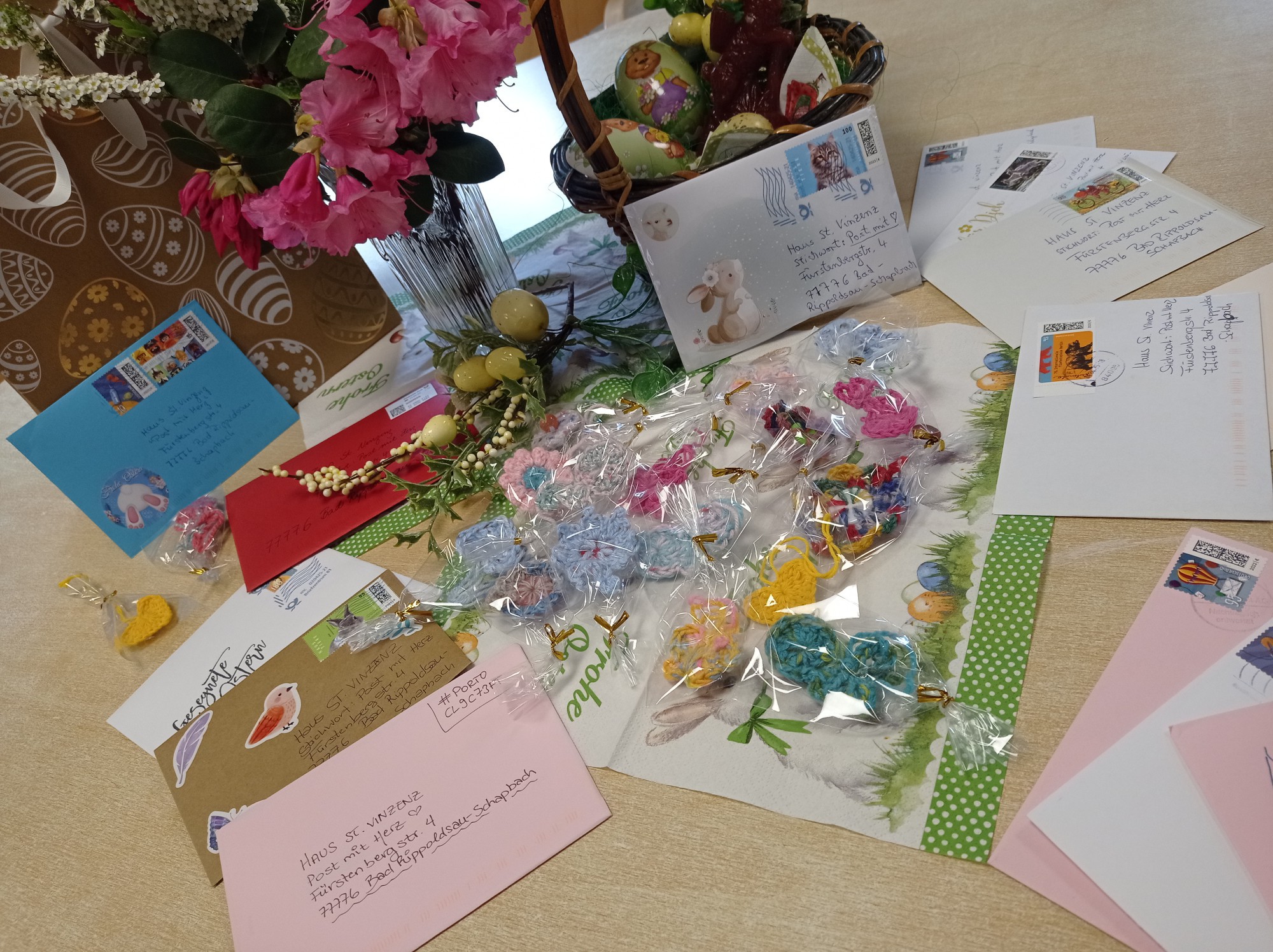 Diese Aktion zauberte vielen ein Lächeln ins Gesicht und erinnert daran, wie wertvoll kleine Gesten der Zuneigung sind. Besonders schön: Eine Schreiberin hatte sogar für jede/n Bewohner/in etwas handgehäkeltes beigelegt – eine rührende Überraschung. Auch alle anderen Karten wurden mit großer Freude empfangen und haben spürbar Wärme und Verbundenheit vermittelt. 🧶❤️
