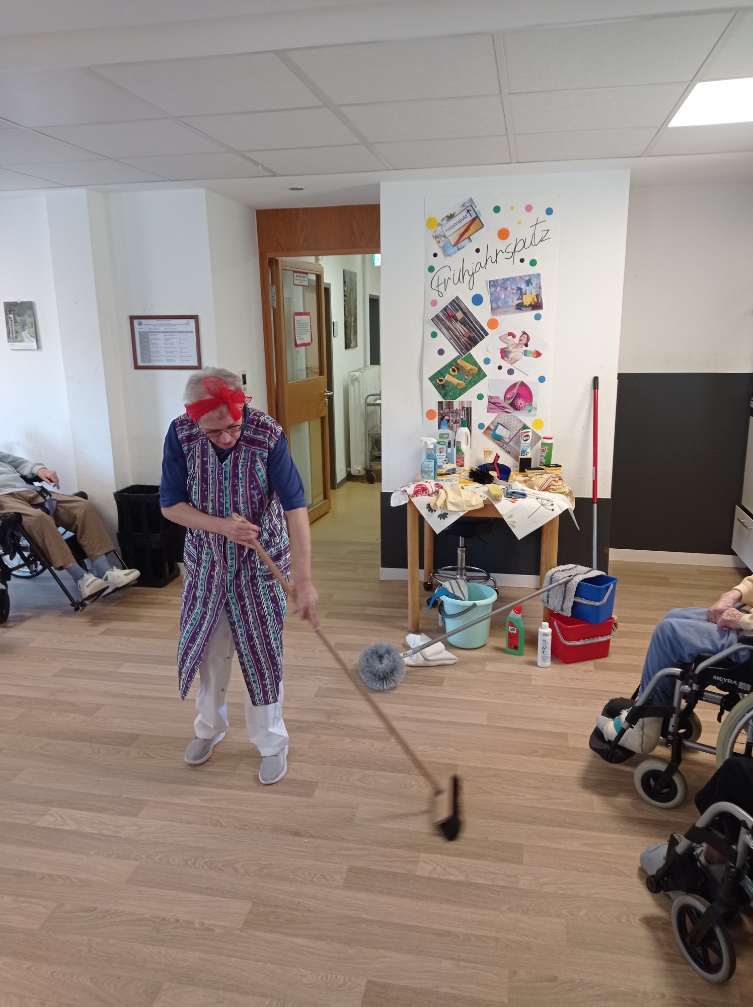 Heute war es soweit: Der Frühjahrsputz im Haus St. Vinzenz! Die Besen sausten, Staubwedel flogen durch die Luft und das Staubtuch kam auch zum Einsatz. 🧽💨 Die Bewohner/innen schwelgten in Erinnerungen an früher, als die Putzmittel noch ganz anders rochen – Schmierseife war ein Muss und das Fensterleder aus echtem Leder durfte nicht fehlen. 🪣🧼 Es wurde nicht nur geputzt, sondern auch viel gelacht und erzählt! 😄 Und zum Abschluss? Ein kleines gemeinsames Singen, um den Frühling gebührend willkommen zu heißen. 🌼🎶