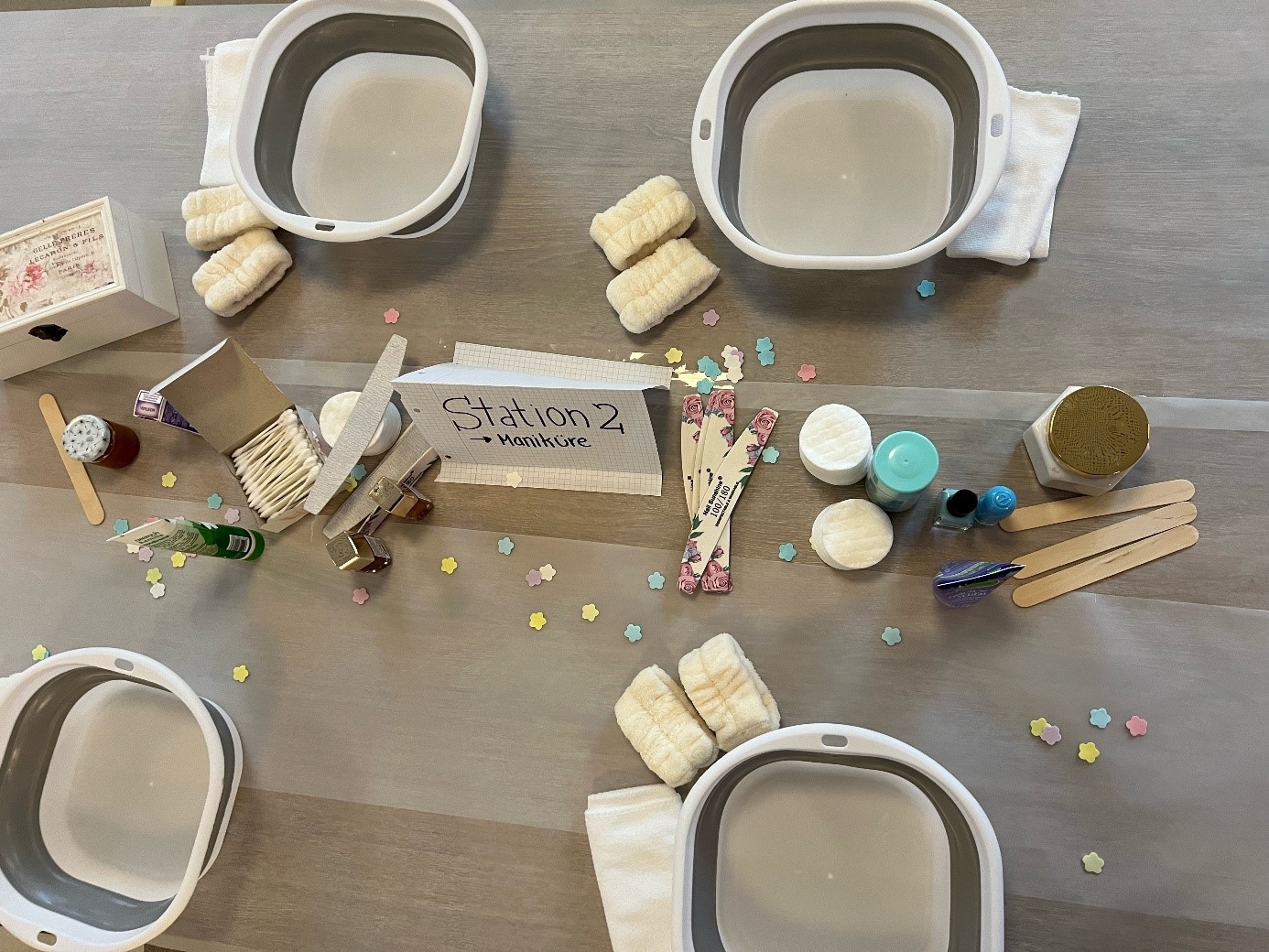 Im Haus Rückenwind wurde ein ultimativer Wellnessnachmittag veranstaltet, bei dem verschiedene Stationen angeboten wurden! Von Maniküre über Peelings bis hin zu Fußbädern – es war für jeden etwas dabei. Die strahlenden Gesichter und die entspannte Stimmung haben gezeigt: Wohlfühlmomente sind ein Muss! 🌸