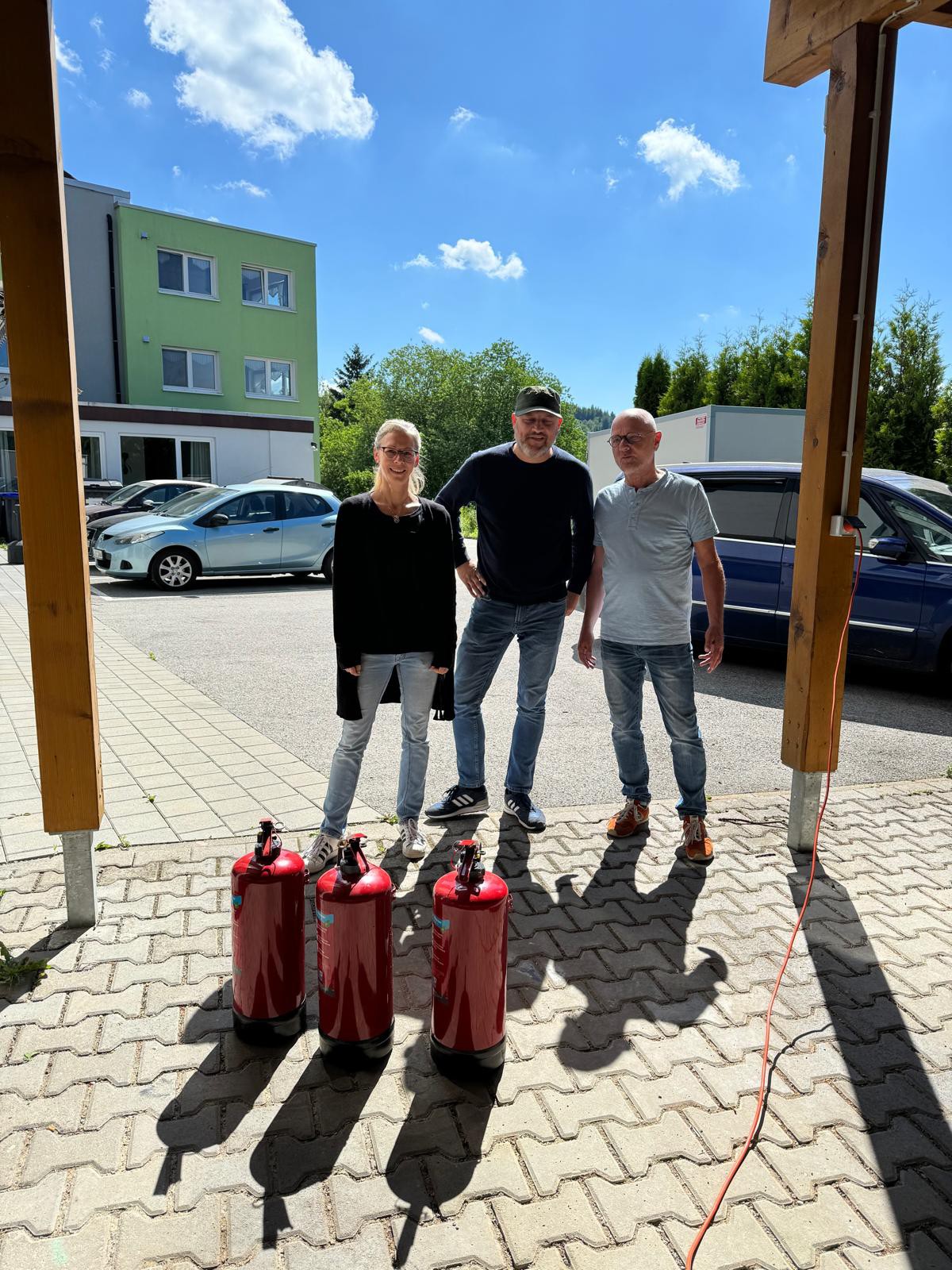 Im Juni durften unsere Mitarbeiter:innen eine alles andere als trockene Brandschutzbegehung mitmachen. Unter fachkundiger Anleitung unseres Brandschutzbeauftragten Sascha Günthner wurde ganz praktisch der Umgang mit einem Feuerlöscher ausprobiert und das Löschen eines Entstehungsbrandes geübt 💪