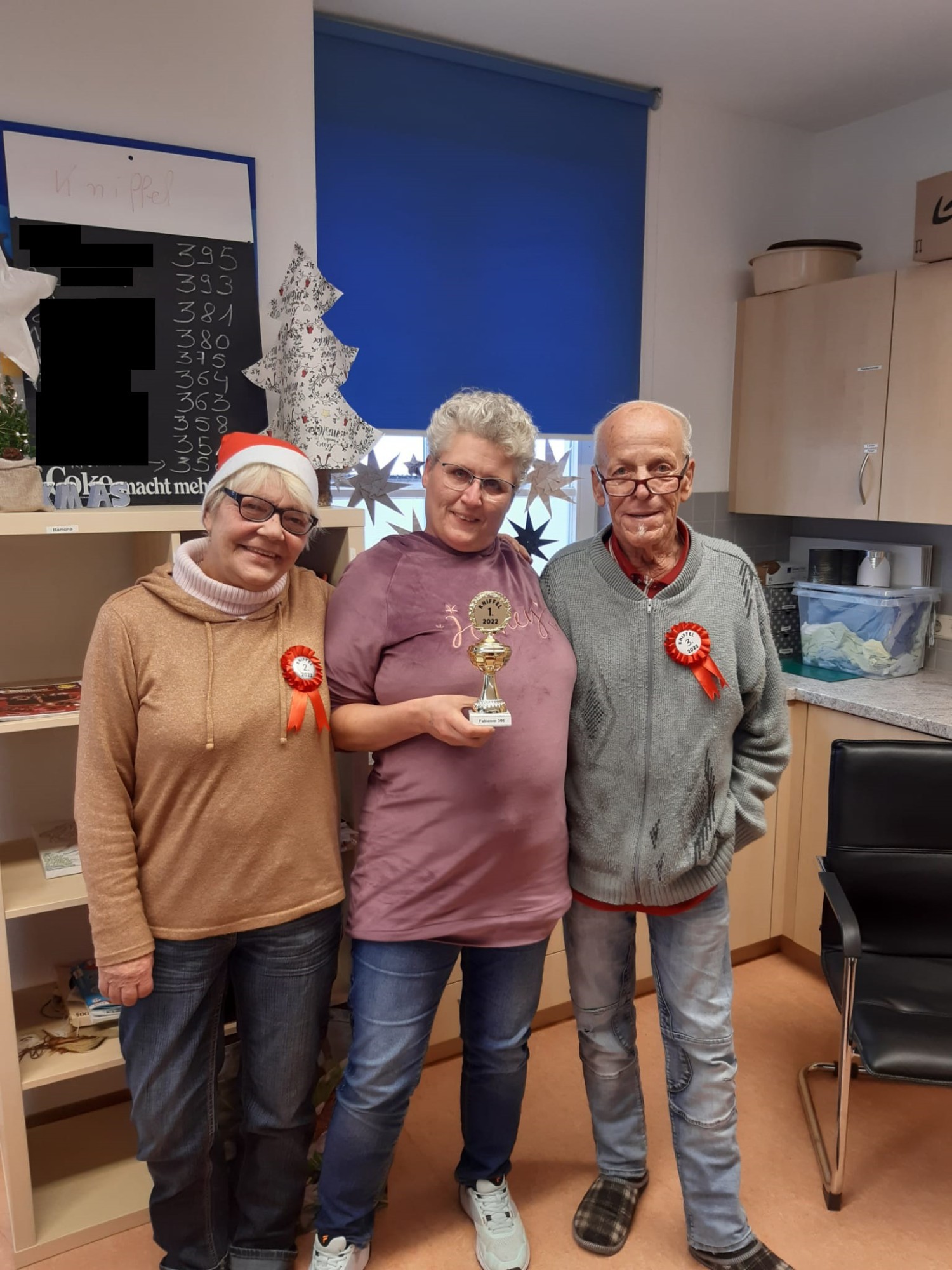 Neben dem geselligen Beisammensein und dem köstlichen Weihnachtsschmaus, wurden dieses Jahr erstmalig die drei ersten Plätze der Kniffelchampions ausgezeichnet. Für den ersten Platz gab es natürlich auch einen Pokal.