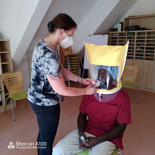 Daher hat unsere Hygienebeauftragte Fr. Beilharz sich erfolgreich informiert und wir sind nun stolzer Besitzer eines FIT-Tests. Damit kann geprüft werden, ob die Maske richtig sitzt und so kann für jede und jeden eine passende Maske gefunden werden. Und er sieht nicht nur spannend aus, er fühlt sich auch interessant an und macht Spaß.