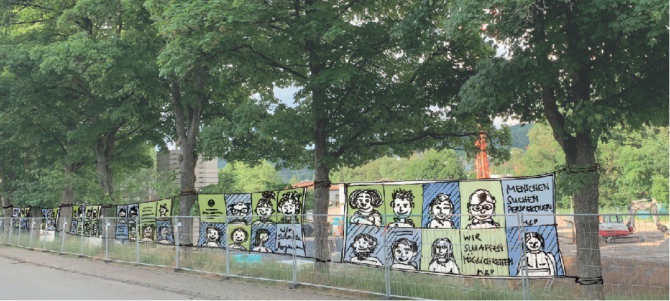 Bauzäune müssen nicht langweilig sein und was könnte wohl interessanter und vielfältiger sein als unsere Mitarbeiter*innen und Bewohner*innen?